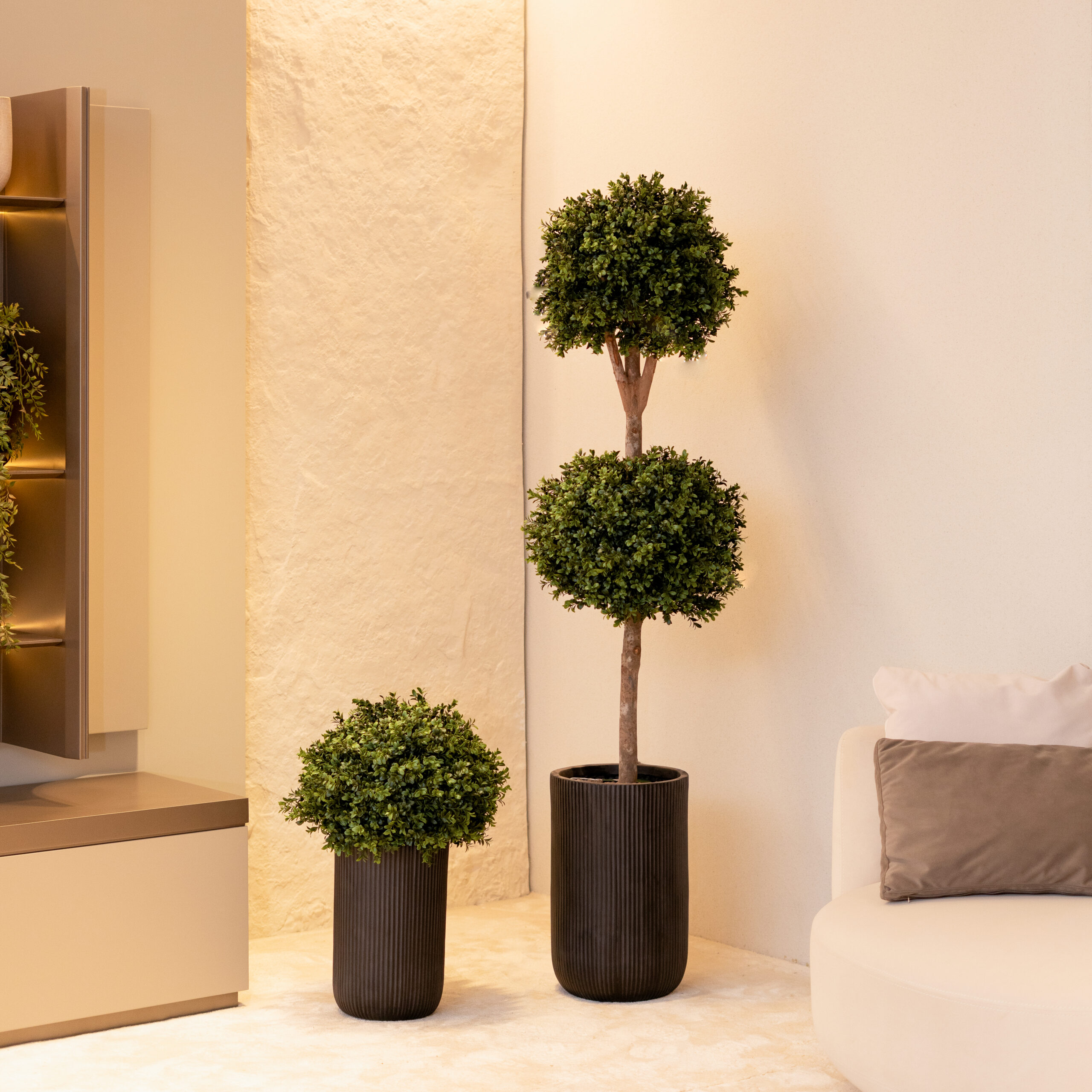 Avec ses deux boules parfaitement formées et son feuillage dense et réaliste, il transforme un salon, un hall d’entrée, une chambre à coucher en un espace raffiné et harmonieux.