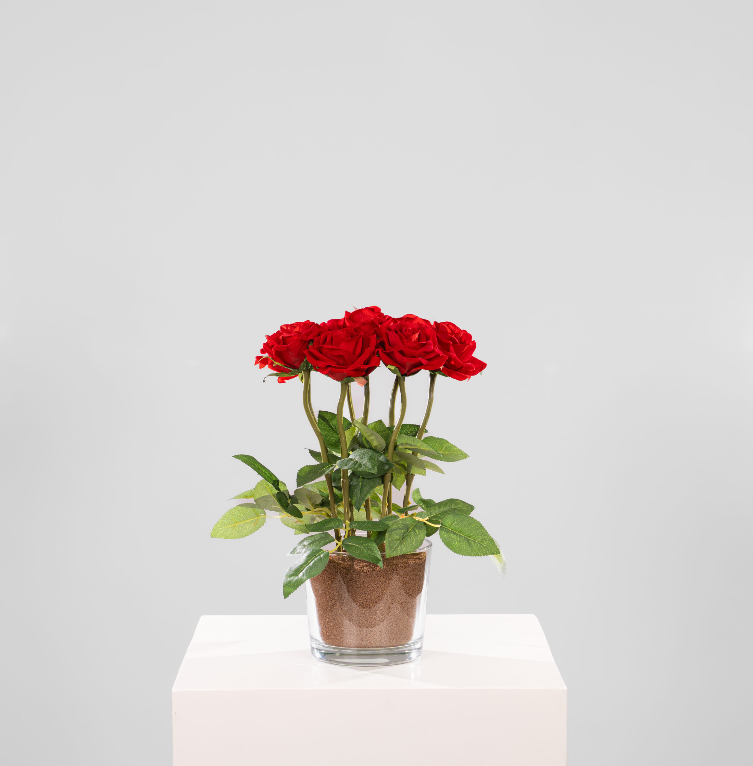 Ses 8 roses rouges veloutées, arrangées avec soin dans un vase rond transparent, créent un ensemble harmonieux et captivant, où chaque fleur trouve sa place pour sublimer l’ensemble.