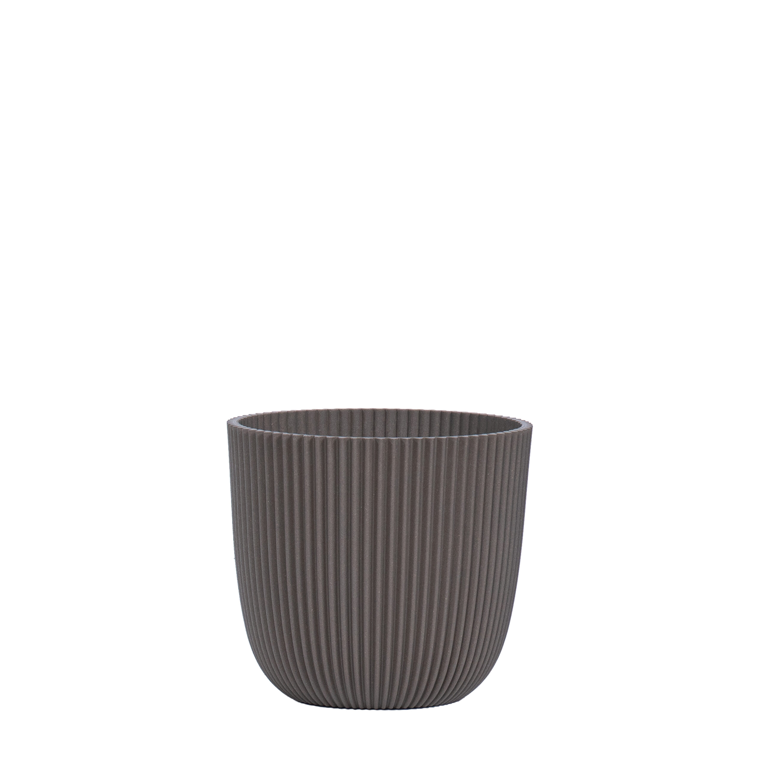 Apportez une touche de style et de modernité à votre intérieur avec ce mini pot œuf à rainures marron, disponible en deux hauteurs.