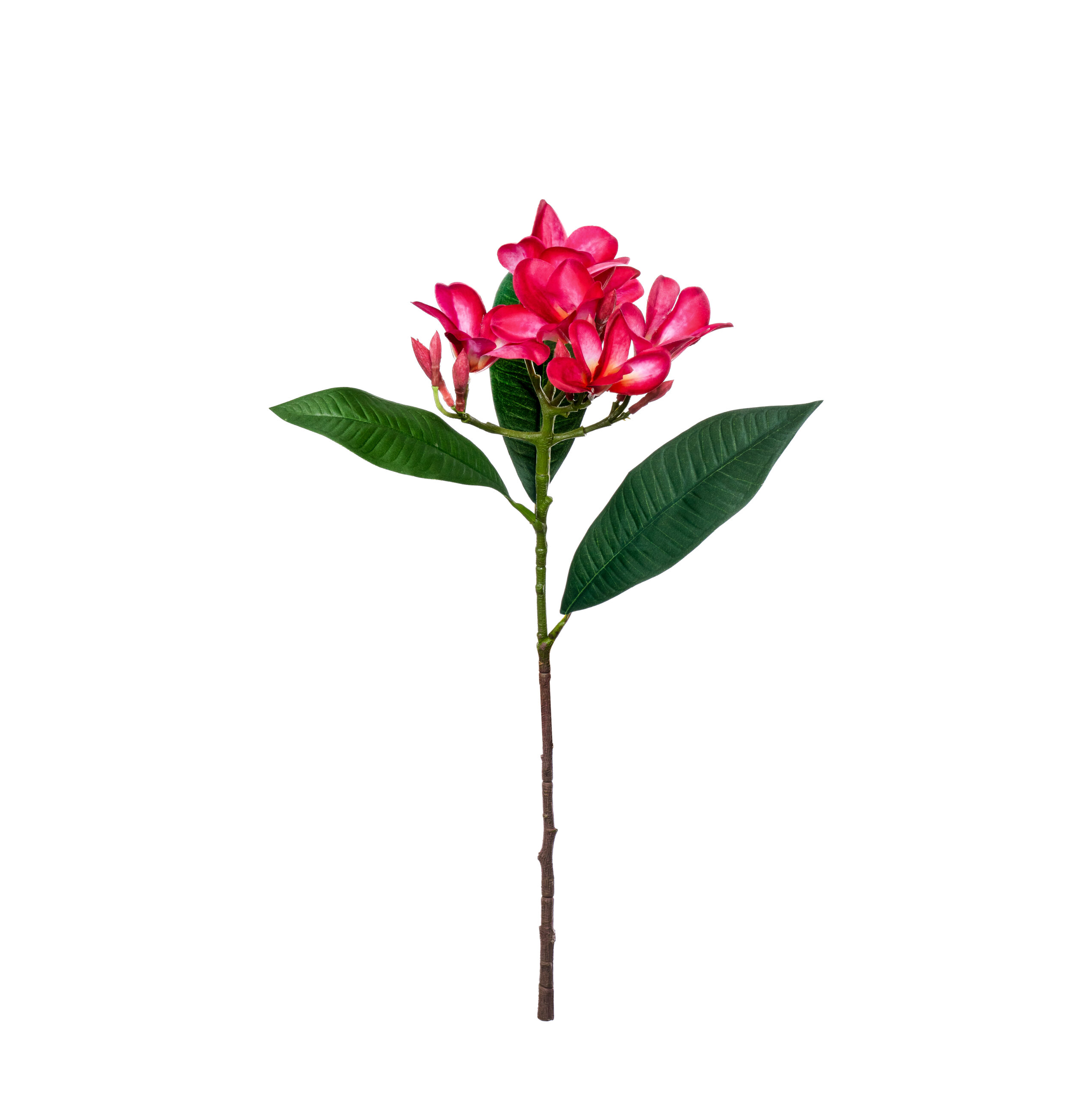 Vibrante et pleine de charme, la Plumeria Fushia L 51cm séduit par ses fleurs aux pétales fuchsia éclatants, apportant une note exotique et lumineuse à tous vos arrangements floraux.
