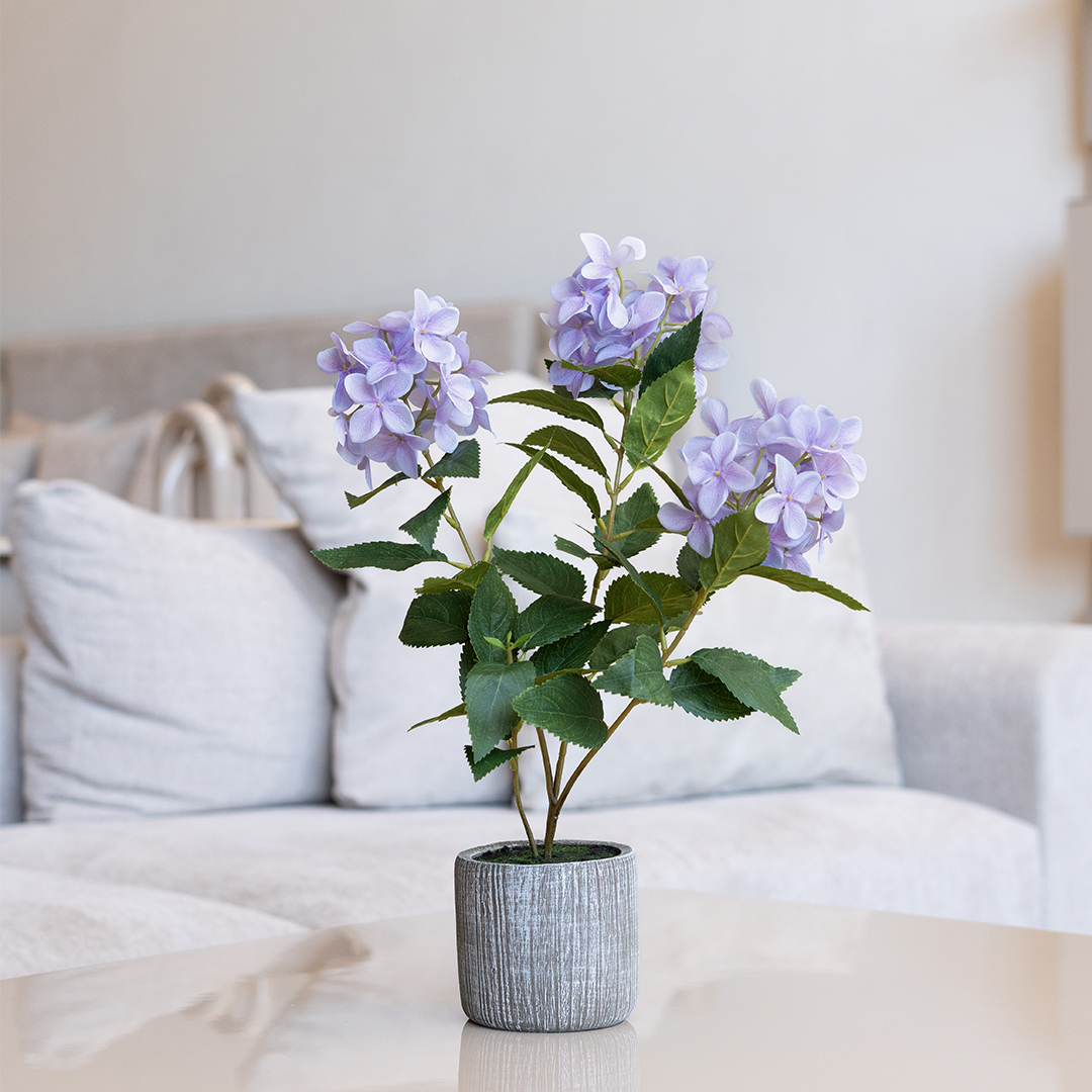 Snowball Blue H 46, est une composition florale délicate aux nuances bleu apaisantes, idéale pour sublimer avec élégance vos tables de coin, chambres, bureaux ou salles de bain.